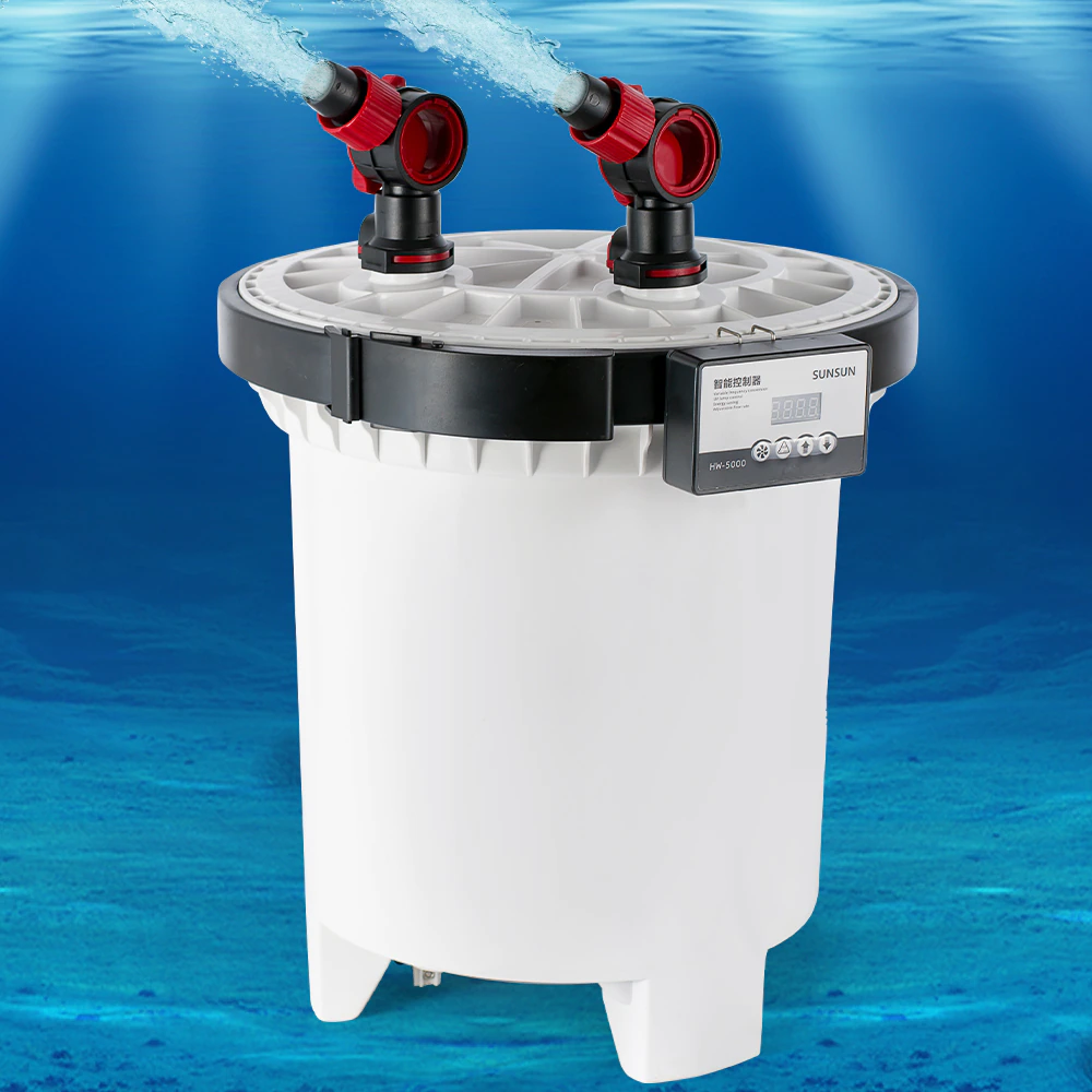 Canister Sunsun HW-5000 cuenta con 7 posibilidades de selección de velocidad, posibilidad de temporizador para ajuste de tiempo de uso de UV, visor digital. Contiene 3 amplios compartimentos para material filtrante. Filtro de alta eficiencia, gran capacidad de de filtración mecánica, biológica e química, entrada y salida de agua independientes en dos válvulas, fácil manejo y mantenimiento, bomba de grande flujo muy silenciosa.